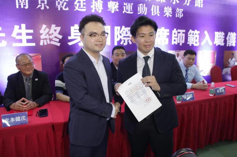 南京乾廷俱樂部總經(jīng)理夏廷暉為日本柔道教練頒發(fā)聘書 -