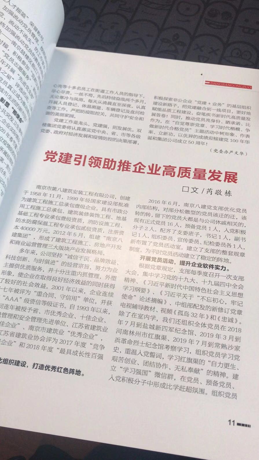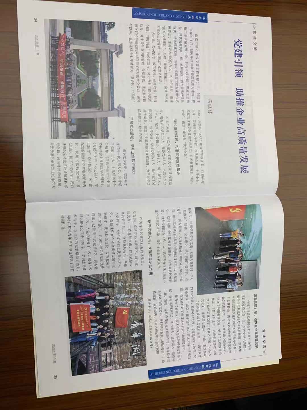 2024年9月,南京建筑業(yè)協(xié)會主辦的《南京建筑業(yè)》(第105期)刊登了芮敬棟同志《深化黨紀(jì)學(xué)習(xí) 筑牢紀(jì)律防線——南京八建黨支部黨紀(jì)教育活動紀(jì)實》一文 -