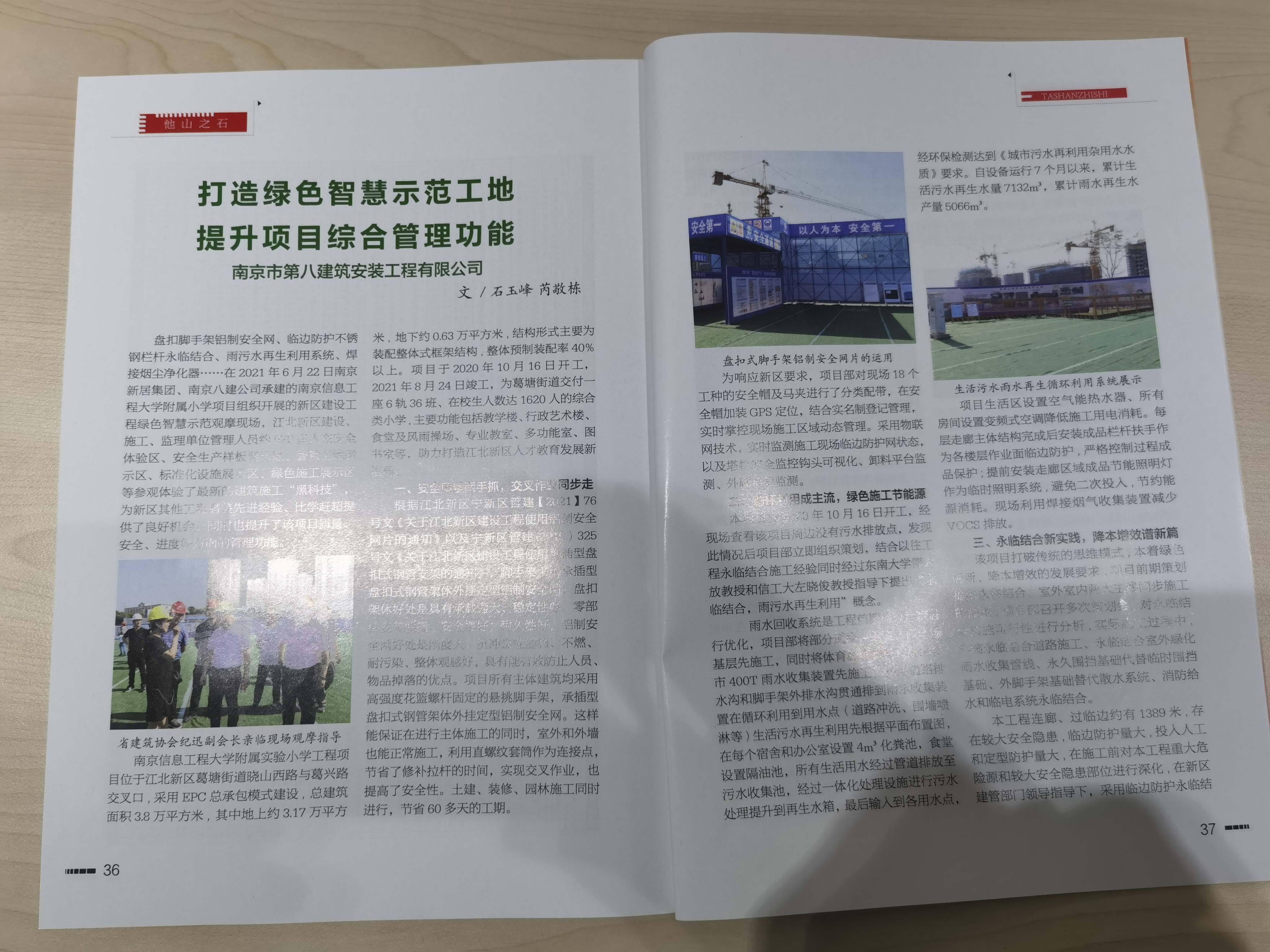 2022年9月《南京建筑業(yè)》第3期刊登了芮敬棟、石玉峰所著《打造綠色智慧示范工地,提升項目綜合管理功能》一文 -