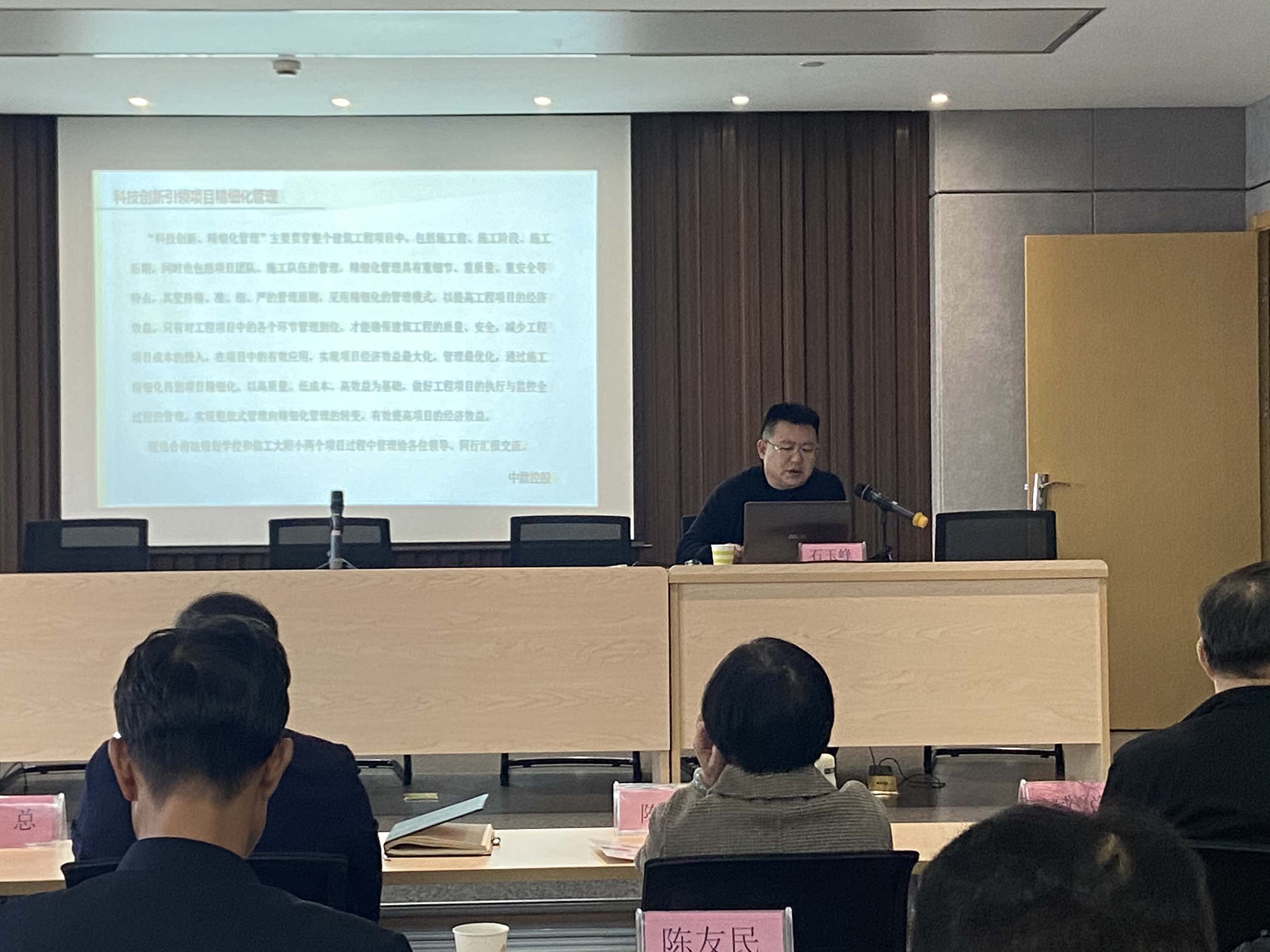 2022年11月19日,八建首屆論壇,項目部經(jīng)理石玉峰作《科技創(chuàng)新引領(lǐng)項目精細(xì)化管理》工作交流匯報和經(jīng)驗介紹 -